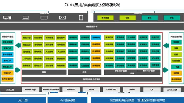选用先进开放的平台为基础,建设智慧校园ERP系统,实现校务(学校人、财、物)、招生的全面线上智慧管理,并实现与智慧校园物联网的无缝打通,满足教育集团化、国际化、多校办学管理需求,支撑该教育集团的未来长期发展要求。