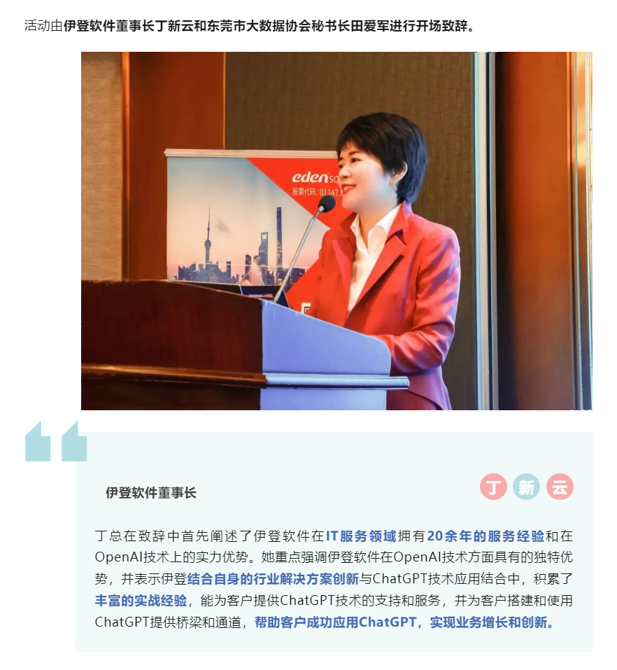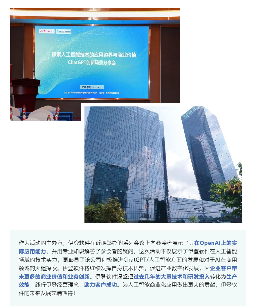 利用AI实现业务增长和创新 | 伊登软件ChatGPT创新场景线下活动东莞站圆满举办!