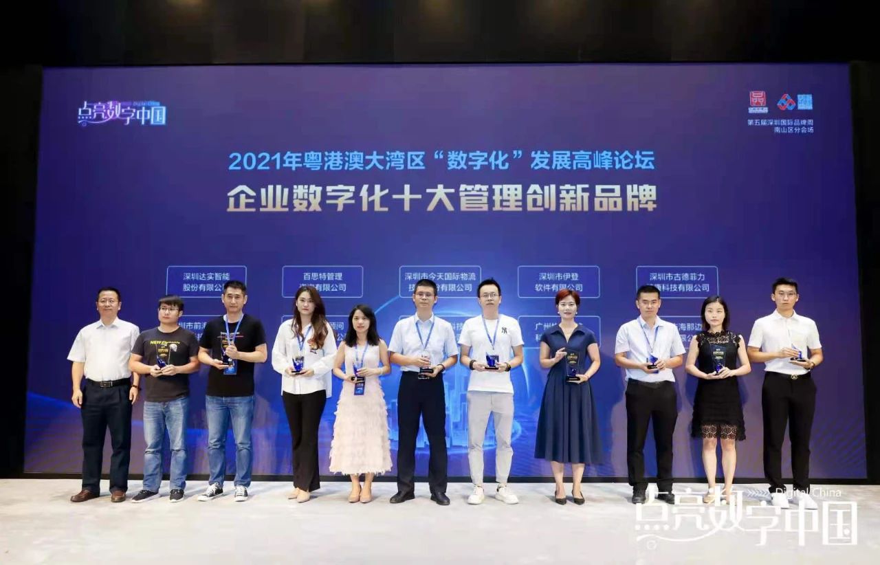 2021年5月27日,“点亮数字中国”2021粤港澳大湾区数字化发展高峰论坛在深圳市南山区成功举办,产学研各界领军人物汇聚一堂,共同探讨数字经济发展新趋势,推动粤港澳大湾区高质量高效率发展。“2021年点亮数字中国系列奖项”榜单在论坛会上隆重发布,深圳市伊登软件有限公司以突出的综合实力荣膺“企业数字化十大管理创新品牌”。